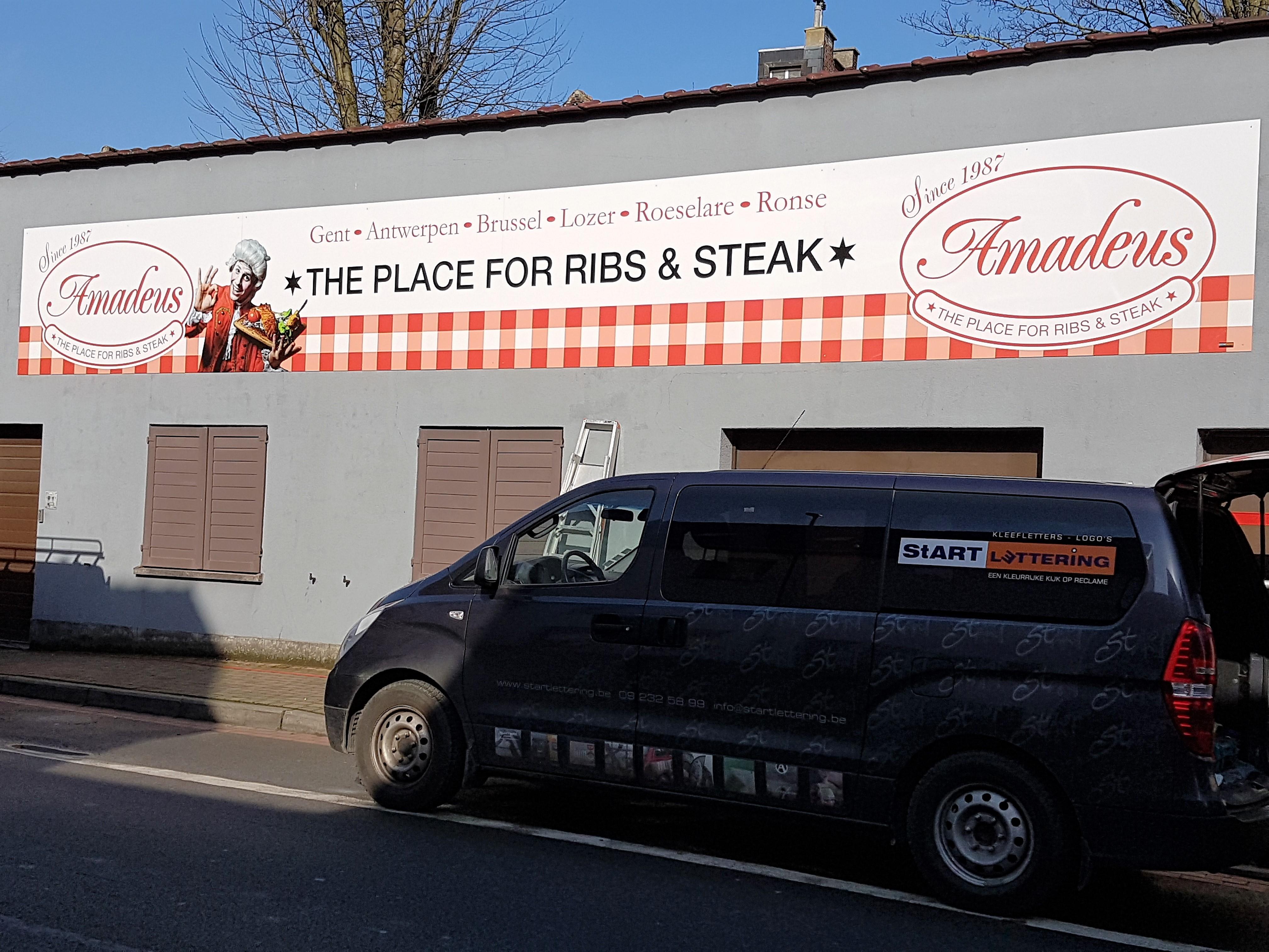 Bekijk ook onze andere realisaties: Belettering van Voertuigen, vrachtwagens, wagenpark, Reclamboden, Digitaal Full-Color Printing, Productie van stickers en labels, Zandstraalfolie, Gevel- & Raambelettering, Spandoeken & Vlaggen, Binnen- & Buitensignalisatie, Squid raamtextiel, …